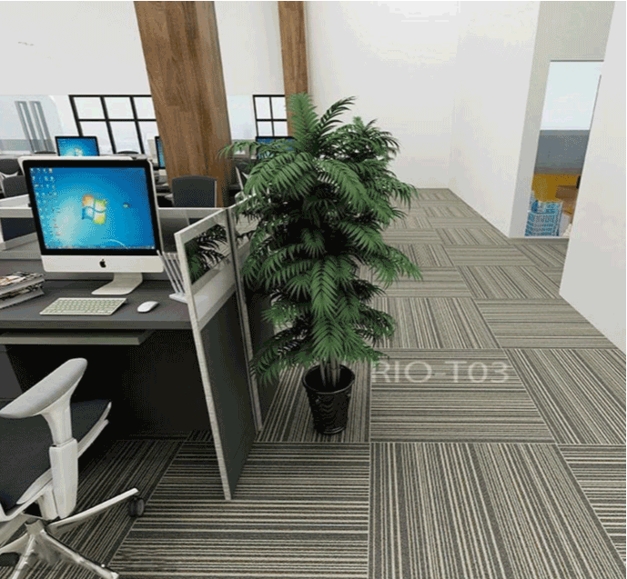 thảm trải sàn RIO T03, thảm tấm trung tâm thương mại, thảm đế bitumen cao cấp, thảm trải sàn văn phòng tòa nhà, tổng kho thảm trải sàn thăng long
