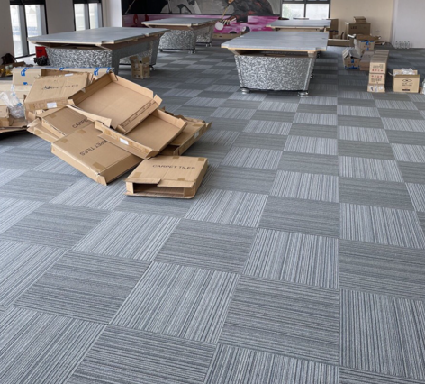 thảm trải sàn RIO T05, thảm tấm sọc ngang màu ghi, thảm trải sàn trung tâm thương mại, thảm đế bitumen văn phòng, tổng kho thảm trải sàn thăng long