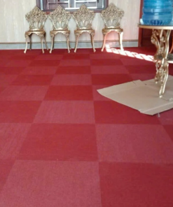 Hình ảnh thảm trải sàn dạng tấm đế cao su PVC cao cấp Mana 06 cho thấy một bề mặt thảm với tông màu đỏ đậm rực rỡ, mang lại cảm giác ấm áp, sôi động và đầy sức sống. Kết cấu sợi thảm được dệt chặt chẽ, tạo độ mịn màng và êm ái khi chạm vào. Màu đỏ đậm của Mana 06 là lựa chọn lý tưởng để tạo điểm nhấn nổi bật trong không gian, phù hợp với các phong cách nội thất táo bạo như hiện đại, Bohemian hoặc các không gian thương mại muốn thu hút sự chú ý. Thiết kế này mang đến vẻ đẹp mạnh mẽ, giúp không gian trở nên ấn tượng và tràn đầy năng lượng.