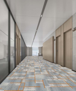 Sản phẩm được thiết kế dành riêng cho các khu vực hành lang, lối đi chung, với hoạ tiết hình khối phá cách, phối tông màu xám ghi – cam nổi bật trên nền dệt chắc chắn từ sợi Nylon 6 cao cấp.