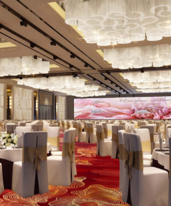 Không gian được khoác lên một lớp đỏ ánh cam sâu sắc, mang đến cảm giác vừa quyến rũ vừa âm áp. Họa tiết trẫn ngẫu mang ngụ ý phong thủy đặc biệt thích hợp cho những dự án khách sạn hướng đến tài lộc, hưng thịnh.