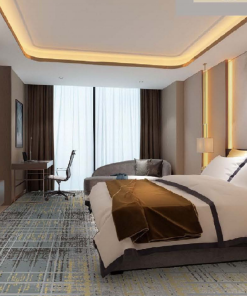 Thảm sử dụng 100% sợi Nylon 6 – chất liệu được đánh giá cao trong ngành khách sạn vì độ bền vượt trội, chống mài mòn và chống bám bụi. Đây là loại sợi lý tưởng cho những khu vực có mật độ đi lại cao như hành lang, phòng ngủ chính, phòng khách…